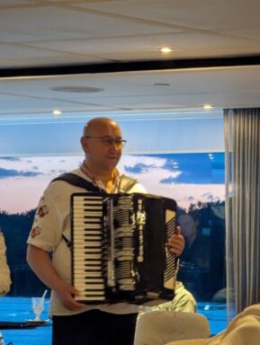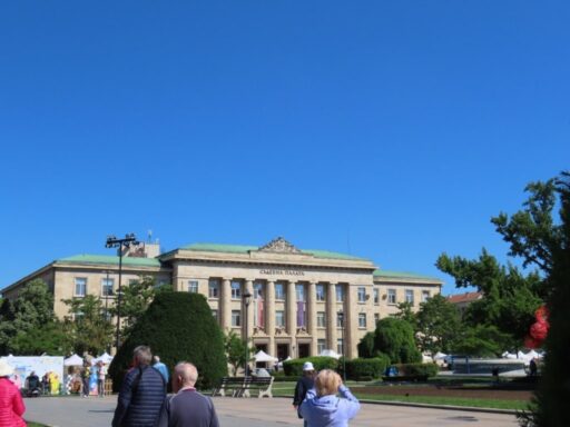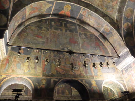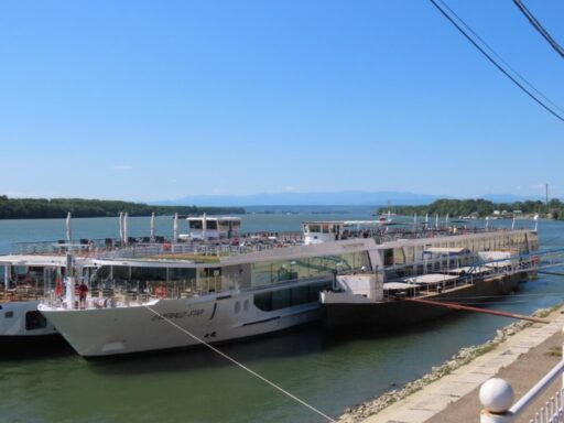 Overnight we cruised to Vinden, still in Bulgaria, docking around 830AM. It seemed pretty dark in the cabin, this was due to the fact that we had tied up alongside another boat. After breakfast we had to wait a while as the other boat decided it wanted to move off! We went up on the open deck to watch the manoeuvres. There was just one crew member (Captain) doing all the work. The ship has three propulsion systems, all of which are controlled by swivelling controls with throttles attached so the boat can move in any direction, including side ways. Makes docking look very easy.